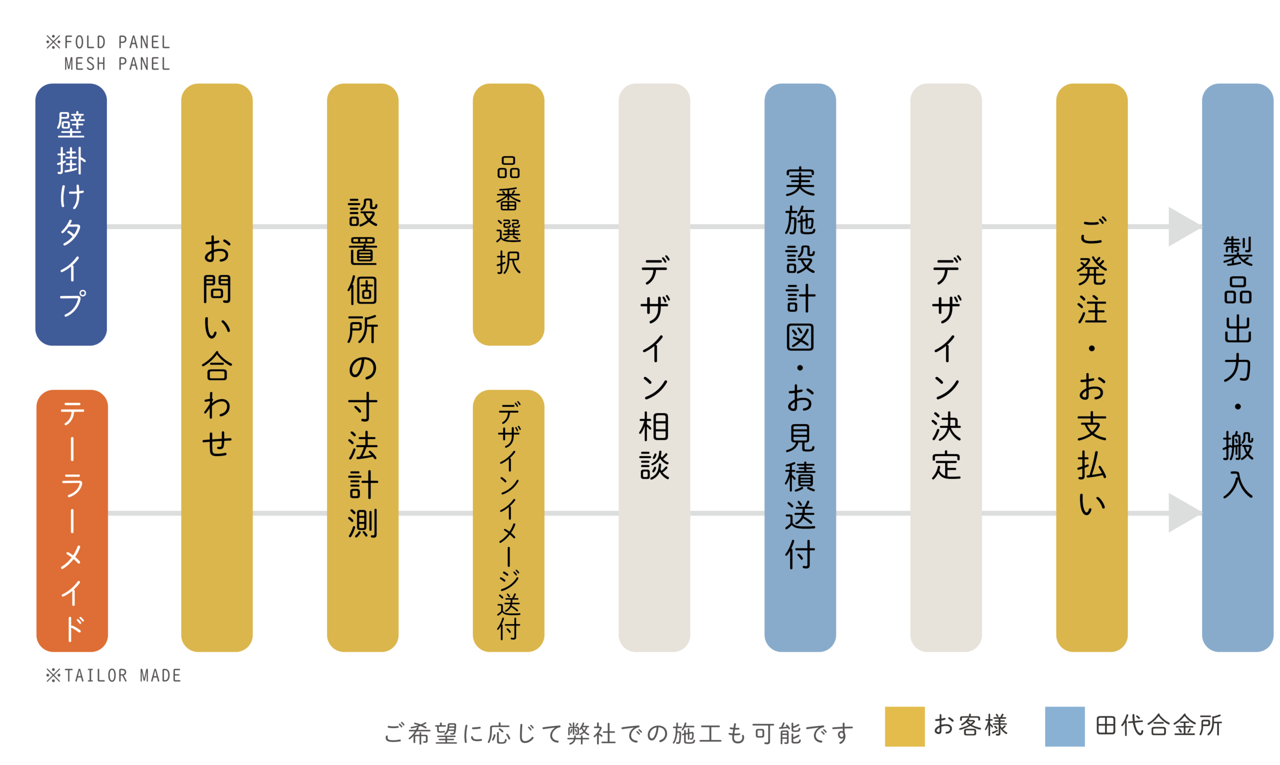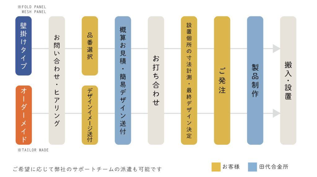 現在「Fold Panel」「Mesh Panel」「Tailor Made」の作例を展示しております。 お気軽にご来社ください。